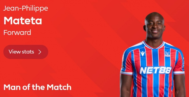 本场比赛水晶宫时尚马特塔演出帽子戏法,赛后他也当选英超官方球迷票选全场最好球员。
