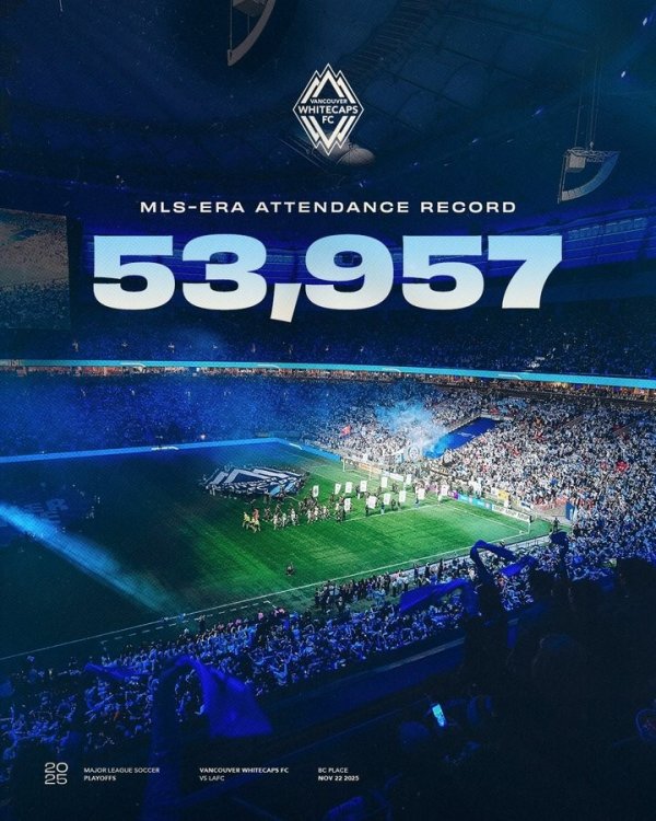 球市火爆!53957名球迷不雅战温哥华白浪vs洛杉矶,创主队MLS记录
