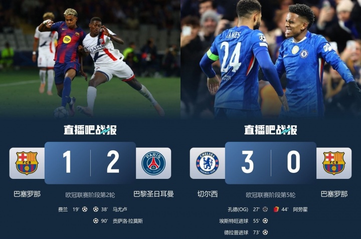 11月26日讯 本日凌晨的欧冠,巴萨0-3不敌切尔西,欧冠战绩来到2胜1平2负。