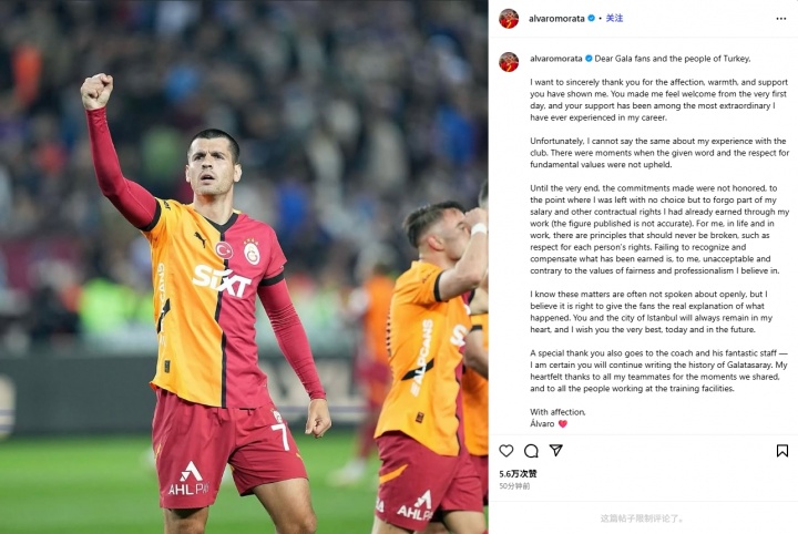 08月12日讯 加拉塔萨雷昨日官宣莫拉塔离队,据悉他行将加盟意甲球队科莫。本日,莫拉塔发晓谕别土耳其球迷,同期炮轰加拉塔萨雷。