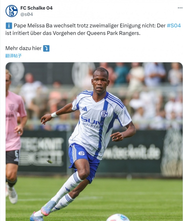 沙尔克发布声明暗示,尽管俱乐部两次与女王公园巡游者就帕佩-梅伊萨-巴的转会已毕一致,但最终这笔来去未能成行,女王公园巡游者8月13日凌晨见告了沙尔克,他们决定毁灭引进球员。