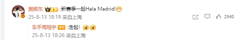 樊振东在驳斥区互动谈:“新赛季扫数Hala Madrid!”周冠宇再修起:“走起!”
