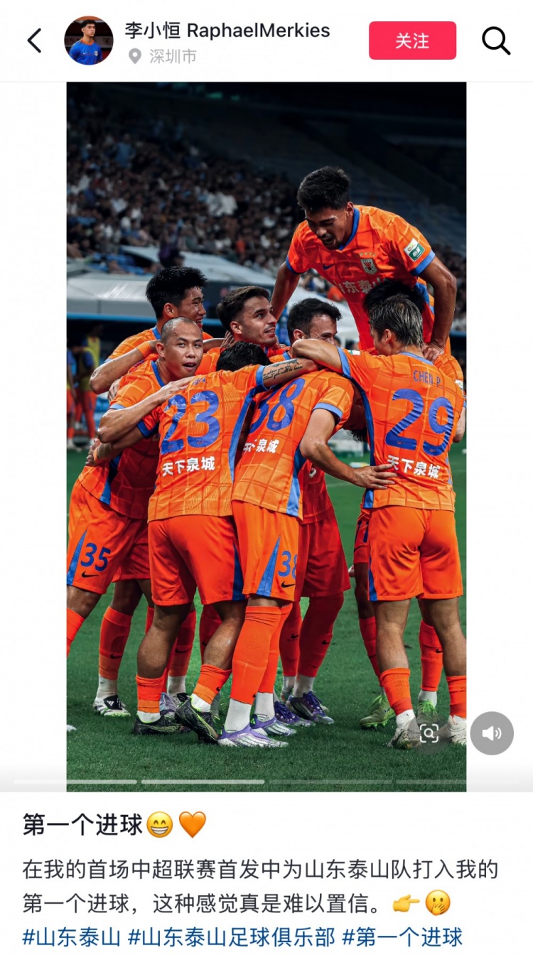 李小恒社媒:初度中超首发就为泰山打入个东谈主首球,这嗅觉难以置信