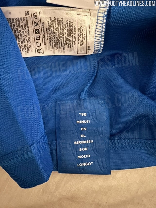 据悉,球衣探究灵感源自伯纳乌球场的新座椅,况且内侧印有“90 Minuti en el Bernabéu son molto longo(伯纳乌的90分钟相配漫长)”,这是圣地亚哥伯纳乌看台上的闻名标语,源自华尼托在1984/85赛季欧洲定约杯半决赛时辰所说的话。