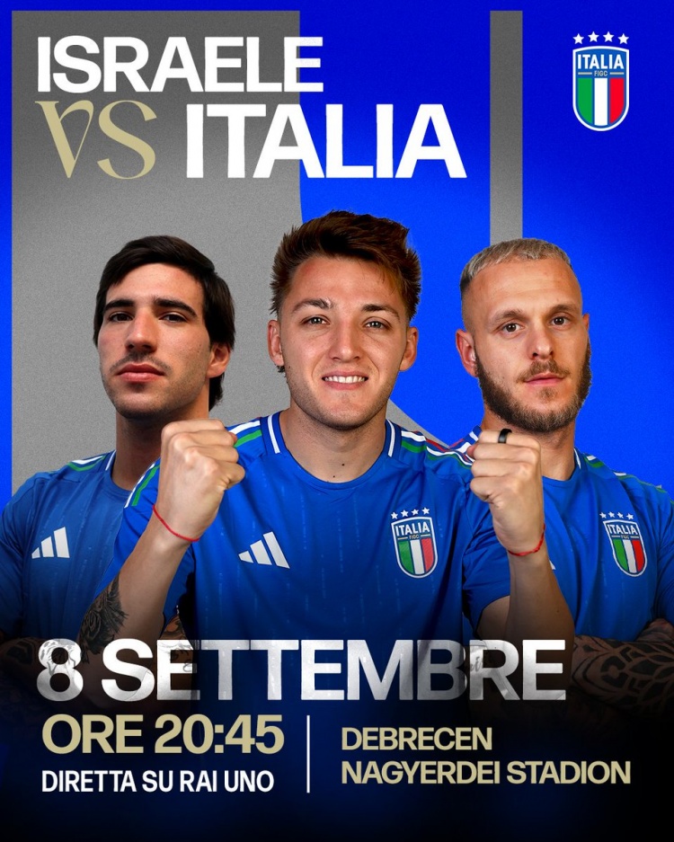 将战以色列,意大利世初赛海报:雷特吉、托纳利、迪马尔科出镜