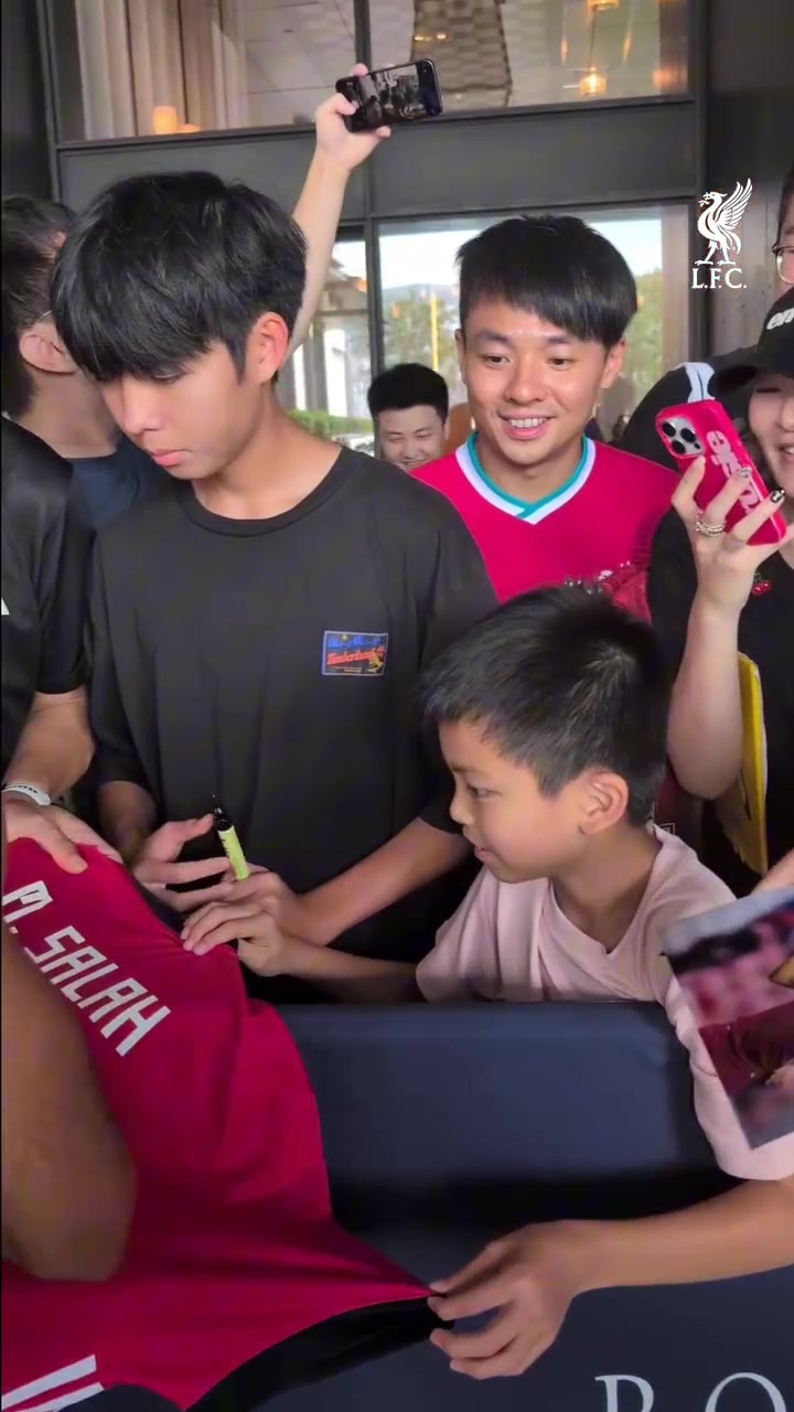 利物浦来到中国香港参预季前赛,俱乐部社媒晒出球员为中国球迷签名的视频,配文:“中国香港的温顺维持。”