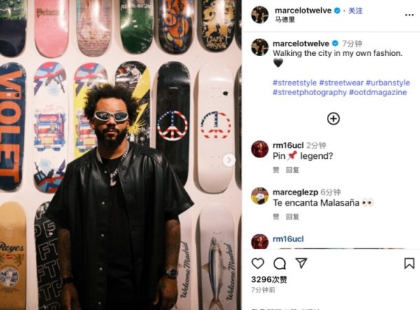 潮男😎马塞洛晒马德里街头citywalk照:我界说我的潮水