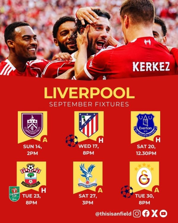 妖怪赛程开启!利物浦9月下半月17天6赛,终末还要远征土耳其