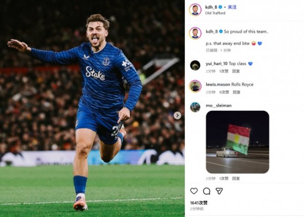 11月25日讯 埃弗顿在本轮英超作念客老特拉福德,在第13分钟就被罚下一东说念主的情况下,最终在客场1-0力克曼联。新援霍尔打进制胜球。 第29分钟,埃弗顿中路渗入,弧顶位置霍尔带球通顺盘带打破,稍作调遣平直兜射,皮球直入上角。 霍尔也在赛后通过社媒晒出我方的庆祝照,并配文:“为这支球队感到无比自高..顺带一提,咱们的客场球迷(真的绝了)💙”......查看更多