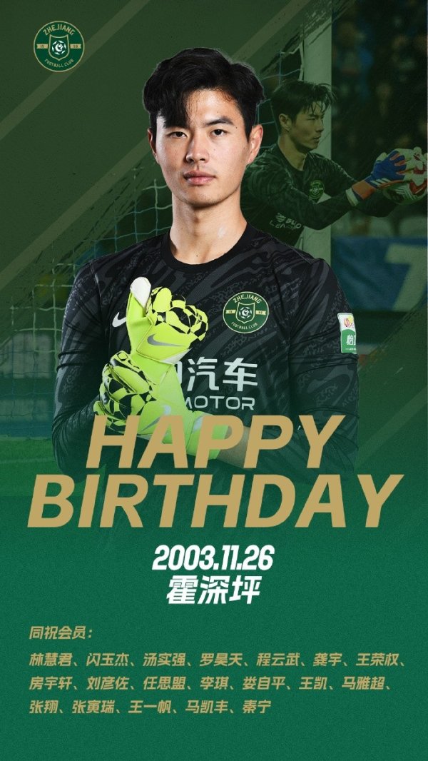 浙江队祝霍深坪22岁诞辰推动,球员本年加盟共出战4场比赛