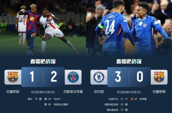 11月26日讯 本日凌晨的欧冠,巴萨0-3不敌切尔西,欧冠战绩来到2胜1平2负。 本赛季巴萨的硬仗说明欠安,欧冠两战一档队均告负:1-2巴黎,0-3切尔西。四肢一档队,巴萨打二档的布鲁日3-3战平,亦然没能拿下。联赛方面红蓝军团1-2不敌皇马,国度德比告负。......查看更多