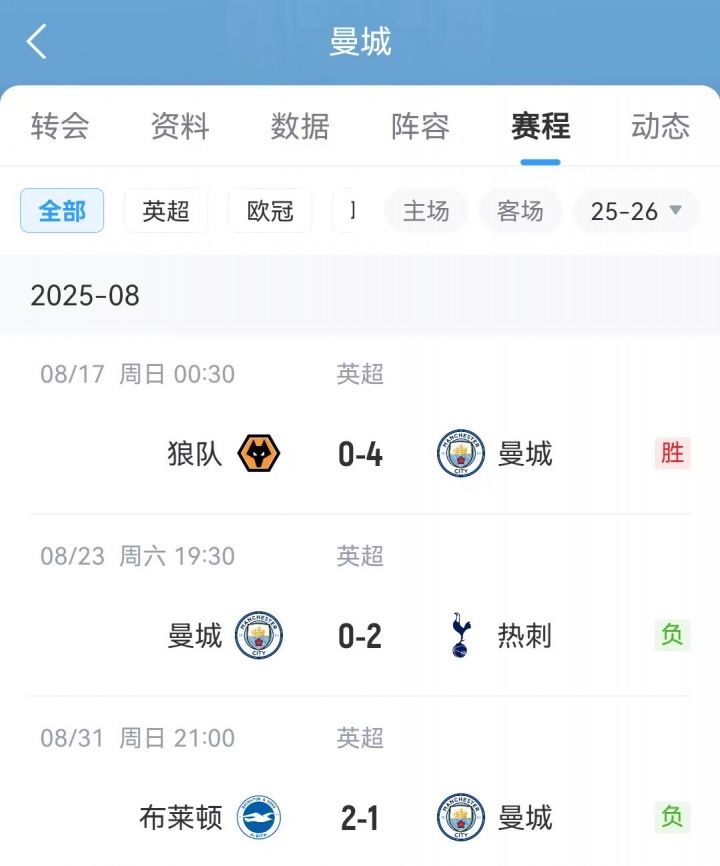 曼城买入多纳鲁马前赛程↓