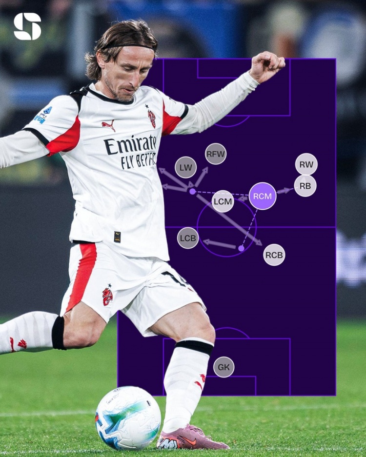 宝刀不老!40岁莫德里奇748次触球+559次告成传球为意甲同时最多