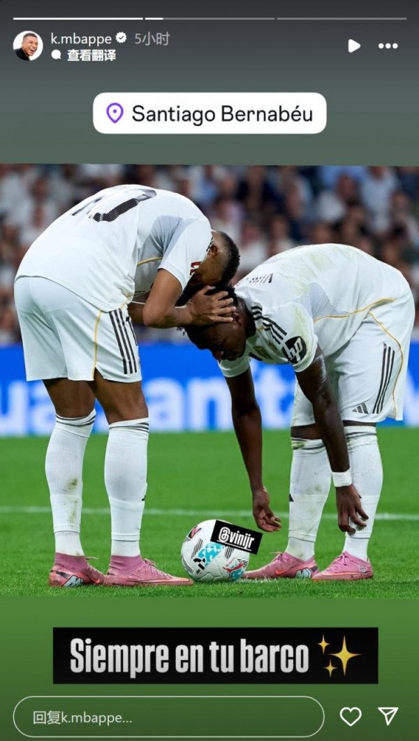 暖心让点!姆巴佩社媒晒与维尼修斯合照:遥远与你同在