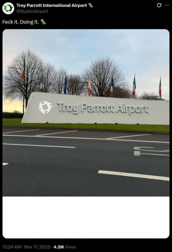 致意进球元勋!爱尔兰皆柏林机场将社媒账号改为帕洛特国外机场