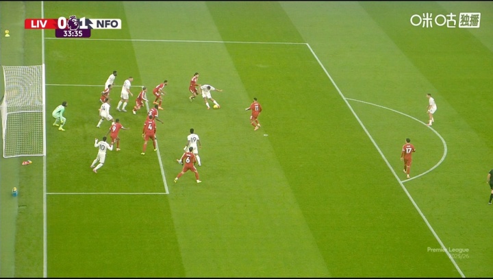 11月22日讯 英超第12轮,利物浦vs诺丁汉丛林,比赛第33分钟,诺丁汉丛林角球契机,穆里略破门。利物浦0-1逾期。