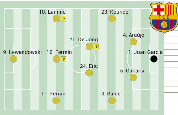 阿斯报算计巴萨欧冠首发:莱万、亚马尔、费兰三叉戟,费尔明在列