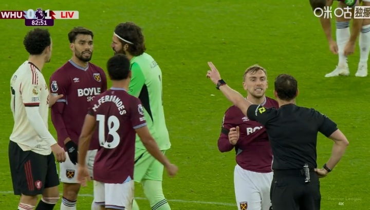 西汉姆联的另一大担忧是,为什么帕奎塔的队友莫得接收更多模范,阻扰他与裁判发生冲破,利物浦门将阿利松果然是唯独拚命把帕奎塔拉开的东谈主。