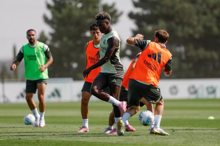 之后,球队进行了政策演练,并以射门熟谙边界了考验。门迪在健身房考验,恩德里克和贝林厄姆在接续收复程度。