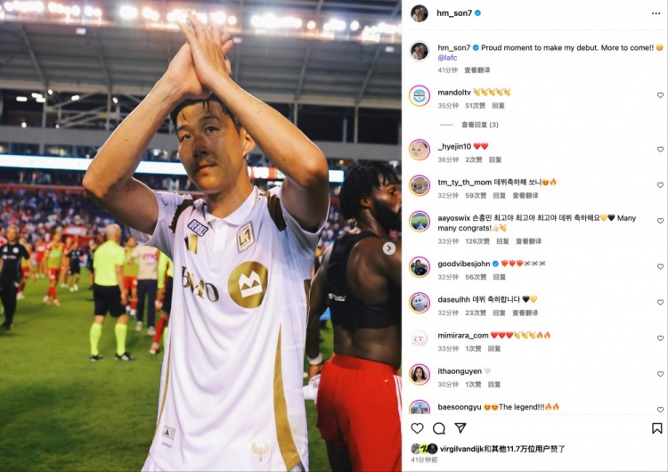8月10日讯 在北京技艺今天上昼进行的好意思职联比赛中,孙兴慜替补出场演出洛杉矶FC首秀,制造一粒点球,最终洛杉矶FC客场2-2战平芝加哥火焰,赛后孙兴慜更新社媒抒发了首秀的怡悦,以及接下来的期待。