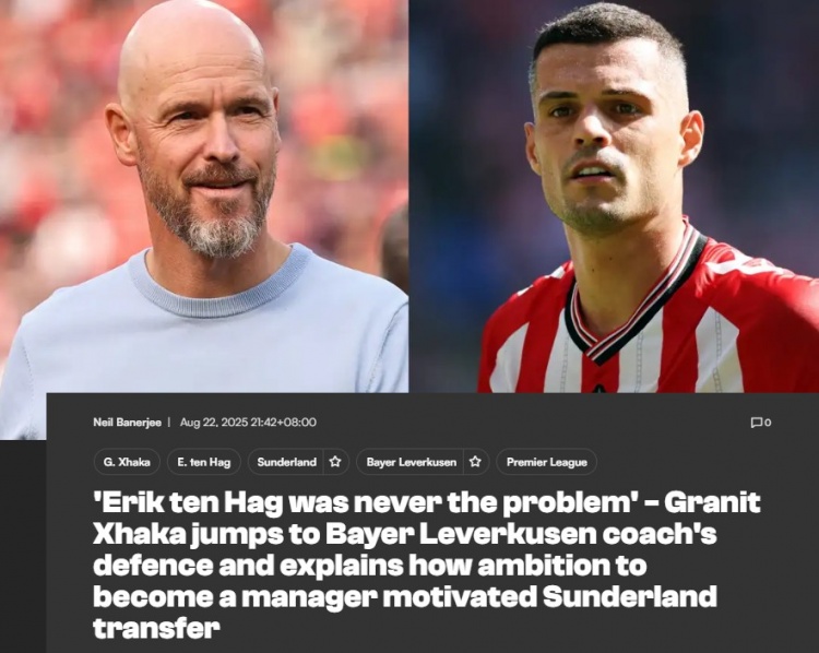8月23日讯 本年夏窗扎卡离开勒沃库森加盟英超升班马桑德兰,在接收采访时,扎卡回复了外界对于他和药厂主帅滕哈赫的一些听说。