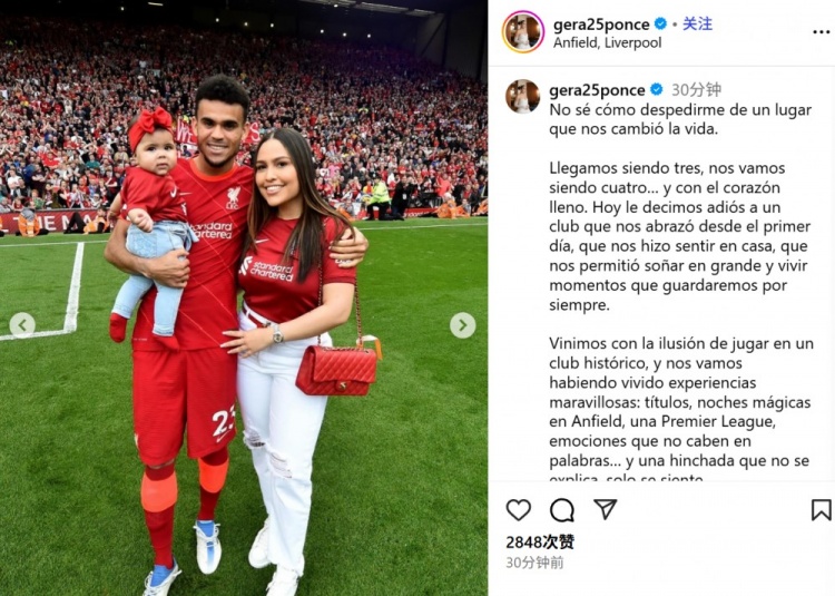7月30日讯 利物浦边锋迪亚斯也曾官宣加盟拜仁,他的内助也通过社媒发文告别: