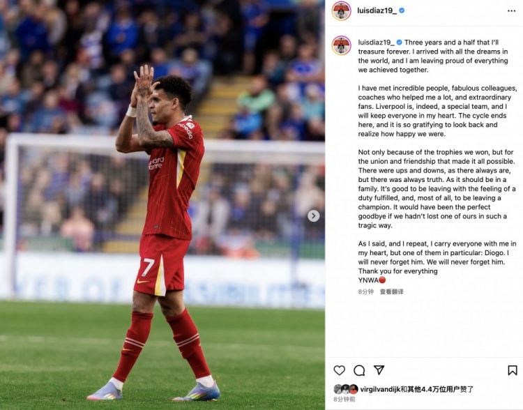 迪亚斯深情告别赤军:永久不会健忘若塔,谢谢你们赐与我的一切