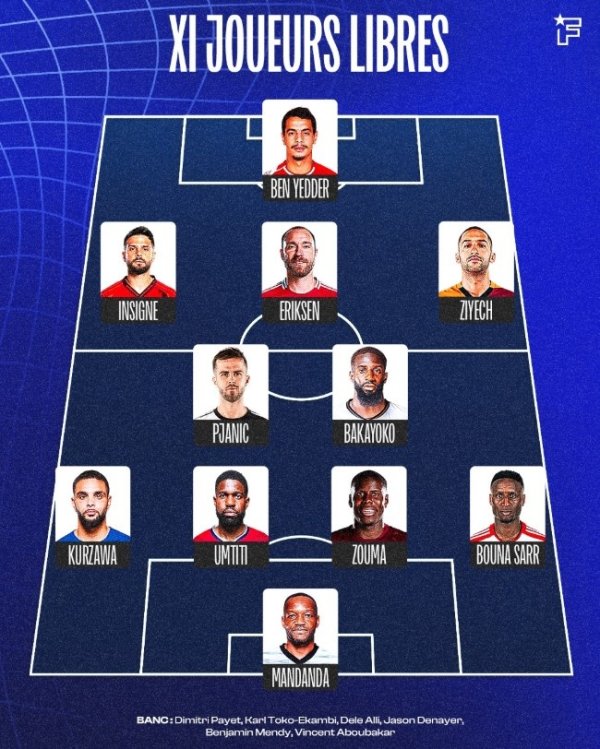 法媒清点目田球员最好阵:埃里克森、都耶赫、乌姆蒂蒂、祖马在列