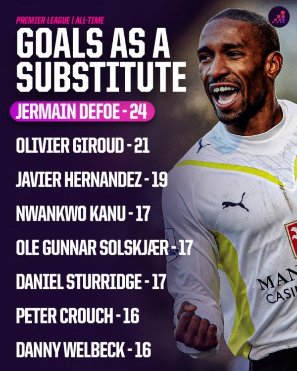 英超替补弓手王榜单:迪福24球居首,吉鲁21球第2,小豌豆19球第3