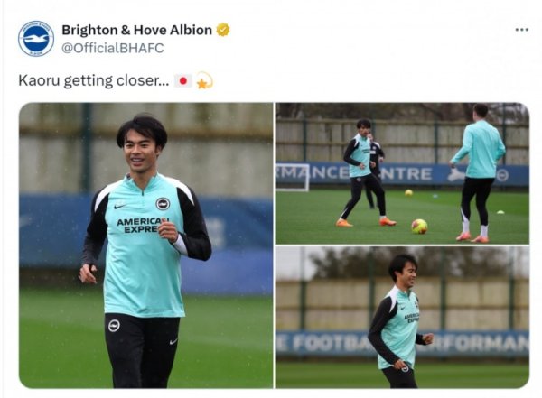 有望复出!布莱顿社媒晒三笘薫还原进修像片