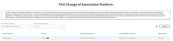 05月20日讯 海外足联协会变更平台官网清爽,成王人蓉城中场杨明洋的会籍由瑞士足协变更成中国足协。
