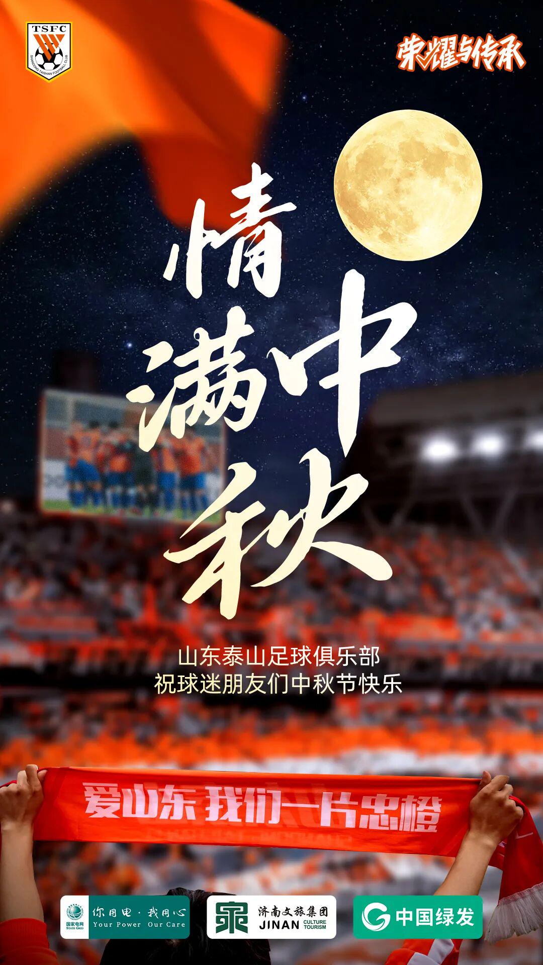 山东泰山足球俱乐部祝远大球迷一又友们中秋称心!