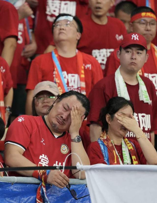 8月3日,“苏超”联赛第八轮常州队客场0:5惨败盐城队后,现场的两位常州球迷泪下如雨。