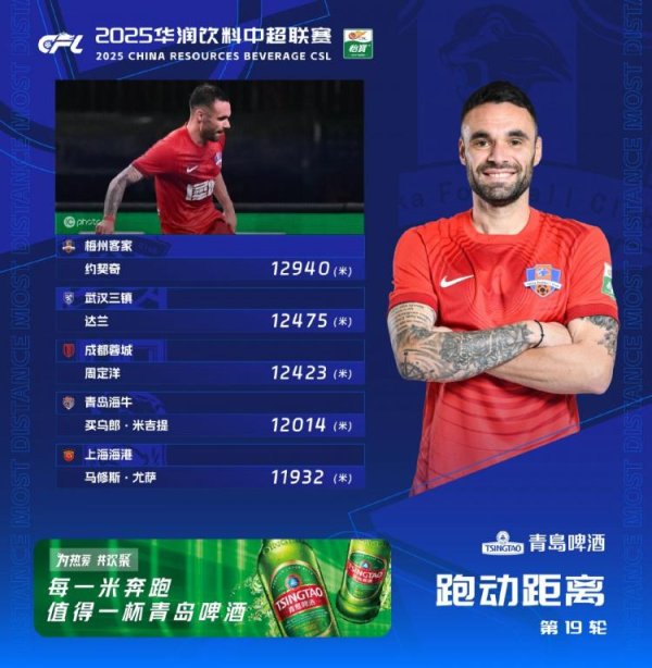 直播吧8月4日讯 中超联赛第19轮升天后,官方公布了本轮的跑动距离榜。排在本轮跑动榜榜首的是梅州客家外助约契奇,他的跑动距离达到12940米,这亦然他贯穿两轮在跑动榜登顶榜首。 本轮排在跑动榜第2位的是武汉三镇外助达兰,第3位的是此前频繁“霸榜”的周定洋。除了以上3东谈主,青岛海牛的买乌郎本轮跑动距离雷同跳跃了1.2万米,而排在第5位的则是上海海港外助茹萨。......查看更多